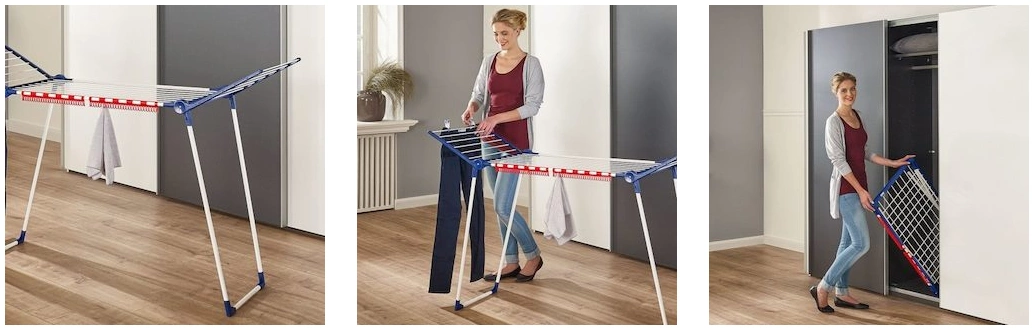 Po złożeniu suszarkę można przechowywać na niewielkiej powierzchni, np. w szafie