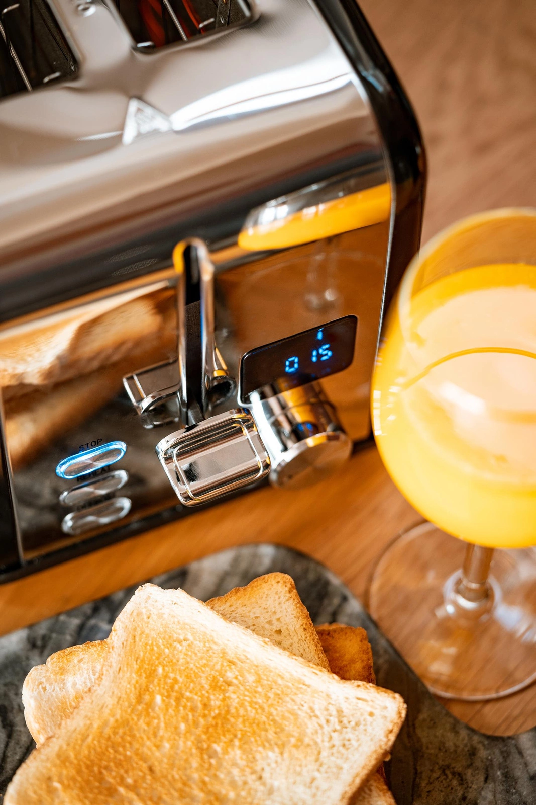 Każdy lubi tosty na swój sposób – delikatnie zarumienione, złociste lub chrupiące na maksa. Dzięki 6-stopniowej regulacji i wyświetlaczowi LCD możesz precyzyjnie ustawić parametry opiekania i cieszyć się idealnym śniadaniem, dokładnie takim, jak chcesz. Ruszt do bułek to z kolei świetna opcja na szybkie podgrzanie pieczywa bez piekarnika.